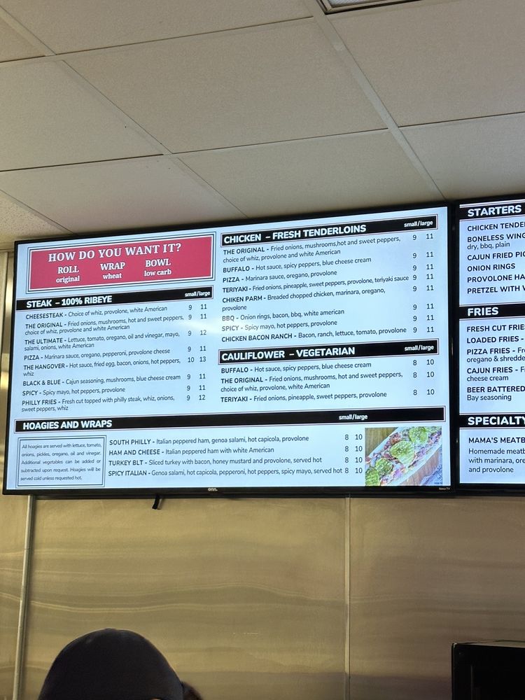 Hot capicola, fried onions,sweet peppers, Whiz, choppedwith Cajun seasoning, spicy mayoand loaded with whizzy tots
